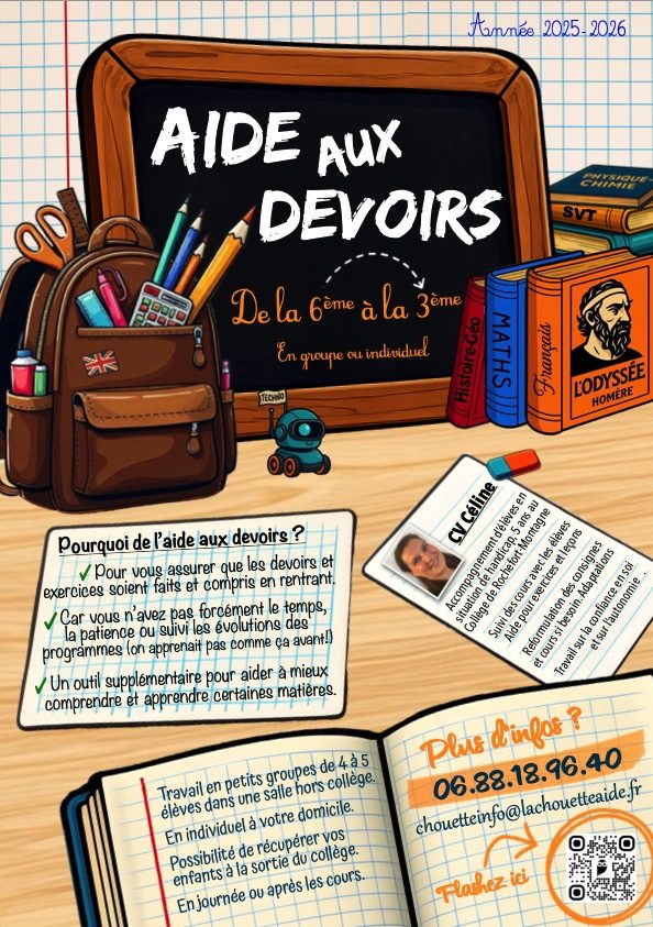 L'aide aux devoirs est un soutien extérieur qui, par une attention particulière, des reformulations, des adaptations, vient s'inscrire en complément des professeurs.